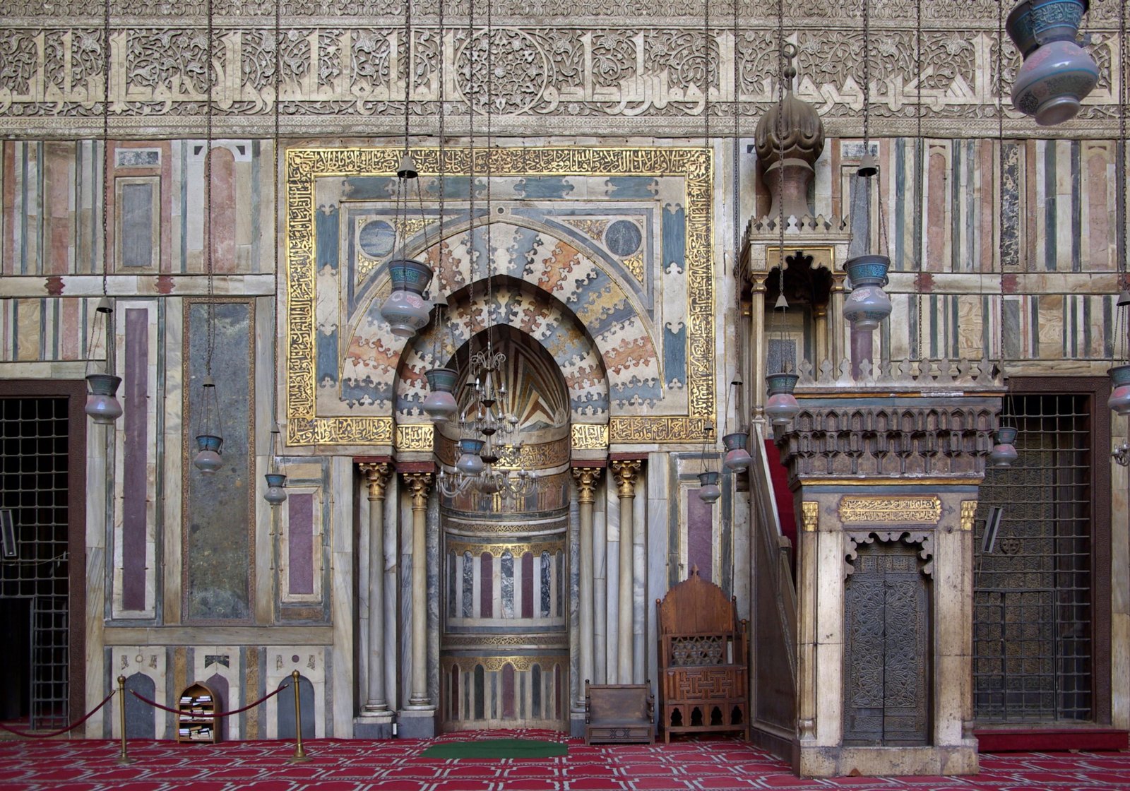 Mosque of Sultan Hassan is a primal example of the early Islamic Mamluk architecture between 1356 A.D and 1363 A.D. The Mosque is 150m in length and covering 7,906 sq m inland and its walls reach the height of 36 m.